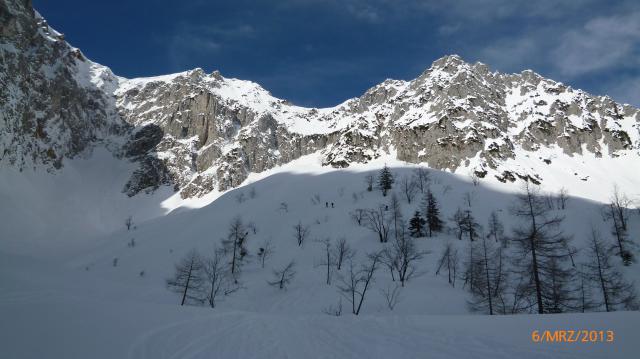 Tourenverhältnisse: Zunächst über Wiesen z. Großpointer-Alm. Dann durch lichten Wald und eine