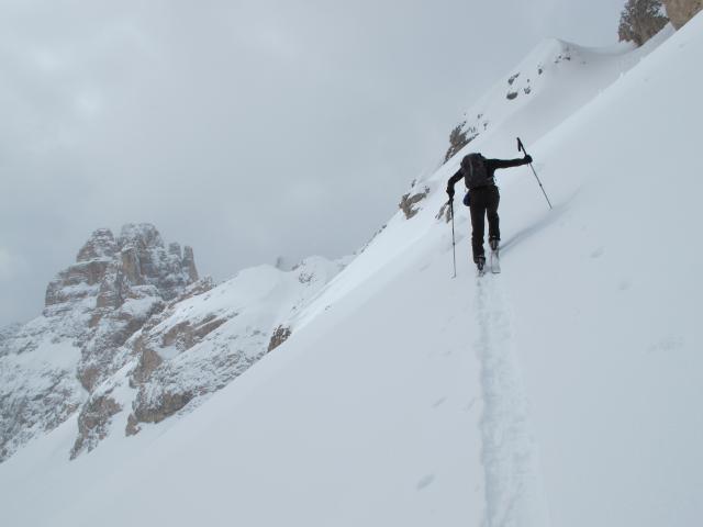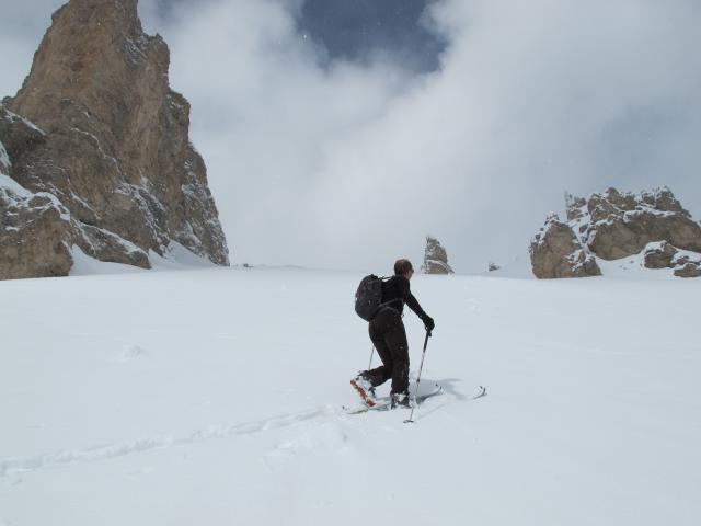 Prognose: Es soll Neuschnee geben und kalt werden. Die Tour geht also noch eine ganze Zeit, evtl. ist die Lawinensituation ab morgen nicht mehr so günstig.