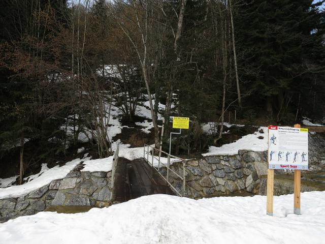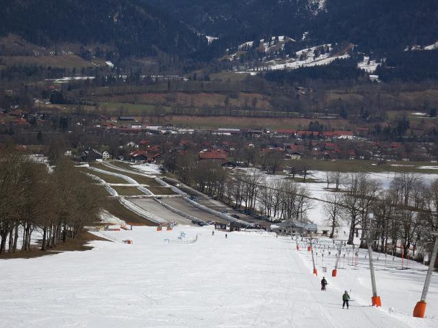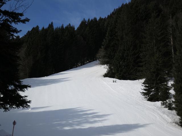 War heute wieder mal von Wegscheid auf dem Brauneck (1555 m). Das erste Flachstück links parallel zum Draxlhang hat noch genügend Schnee. Der Aufstiegshang nach der kleinen Brücke ist jedoch weitestgehend aper (Bild 1); hier muss man (verbotenerweise??) auf die Piste ausweichen. Nach dem ersten "Steilhang" kann man jedoch wieder in den Waldweg einbiegen, der parallel zur Piste verläuft. Weiter über den Waldabschnitt und an der Florihütte vorbei auf bekanntem Weg zum Gipfel (genügend Schnee). Abfahrt mittags im Frühjahrssulzschnee. Da die Abfahrt über die Piste erfolgt, war es sehr gut zu fahren (die Piste war in sehr gutem Zustand, wie z. B. in Bild 2).