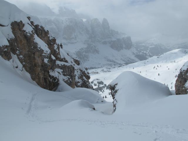 Sonstiges: In den Dolomiten sind erstaunlich wenig Skitourengeher unterwegs. Selbst auf dieser Standardtour nur 2 Leute - unverspurtes Gelände!!!