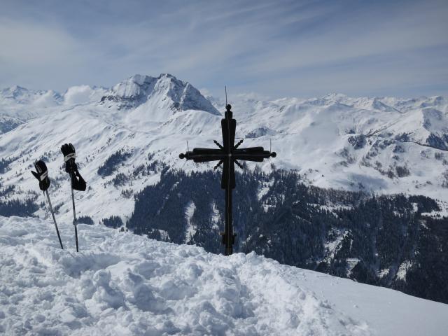 Sonstiges: Die Bahn, zu der man vom Gipfel aus hinüber sieht, war wohl schon außer Betrieb, da kein einziger Pistler auf der Abfahrt nach Aschau zu sehen war. Und Tourler waren's auch weniger als ein Dutzend. Wetter: heiter, wenig Wind am Gipfel und angenehme Gipfelrasttemperatur.