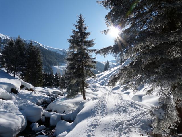 -- Schnee bis zum Parkplatz, solide Schneeabdeckung auf der gesamten Tour