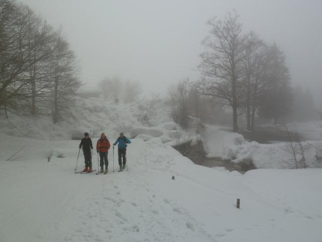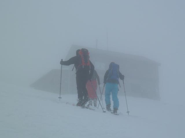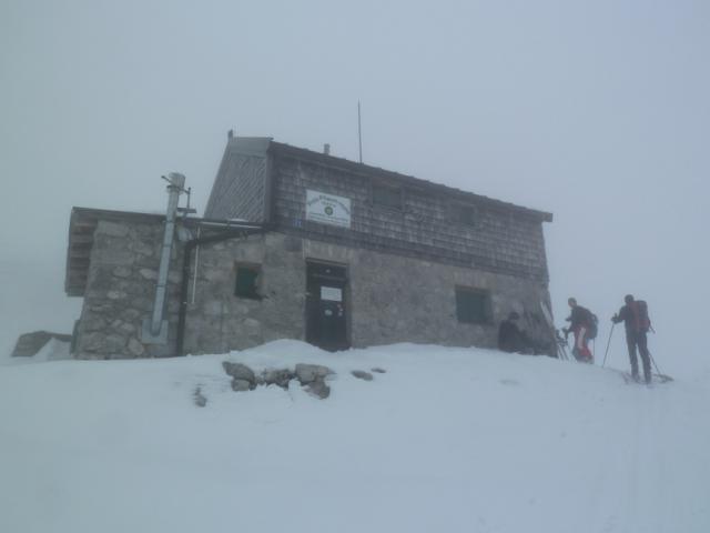 Tourenverhältnisse: Reichlich Schnee vom Parkplatz weg. Ganz oben am kleinen Törl schwerer Pulverschnee, ansonsten meist recht eingefahrene und Route mit oft hartem Schnee. Miserable Sichtverhältnisse (teilweise unter 20 Meter) - die Fritz-Pflaum-Hütte haben wir erst gesehen, als wir quasi davor standen. Danach hat er nur kurz am Törl oberhalb von 2000 m aufgerissen, ansonsten Wolken- und Nebelsuppe.