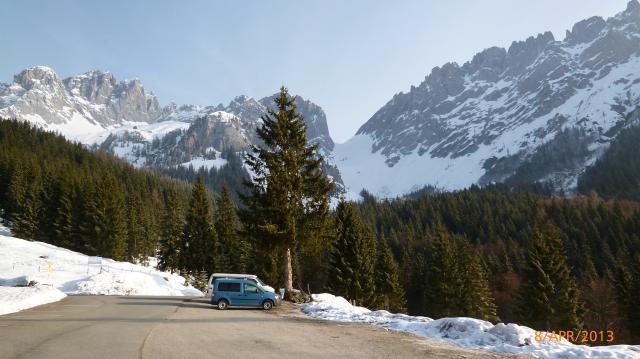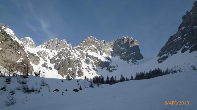waren aufgetaucht. Oben und unten sehr gut zu fahren, in der Mitte etwas hart, viele Lawinenboller.
