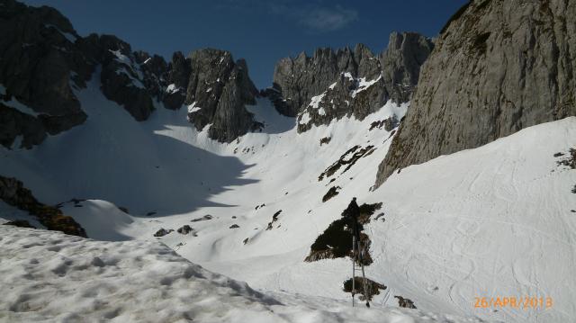 Ohne Harscheisen heute den ersten Steilaufschwung und weiter im Kar bis zur Fritz-Pflaum-Hütte.