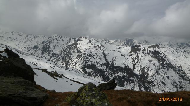 da die unteren beiden Hänge ausgeapert sind, weiter oben noch viel Schnee.