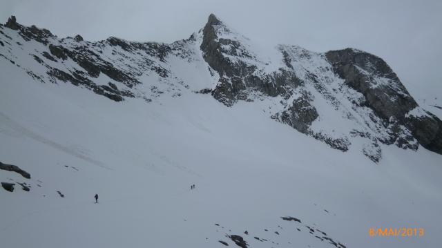 Dann über die Mulden und Rampen i.R. Westflanke des Gipfel.
