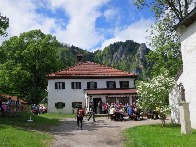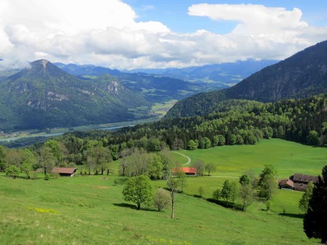 Vom Parkplatz Flintsbach nach Westen auf schönem Bergweg unter der Rachelwand über Wagnerberg durch herrlichen Bergwald mit Bärlauchteppich. Der Bergweg mündet 200m vor der Abzweigung zum Petersberg auf den Hauptweg. Dann auf dem Forstweg zum Petersberg. Der Abstieg vom Petersberg kann direkt hinter dem Gasthaus nach Süden über einen steilen Bergweg mit neuer Seilversicherung zurück auf den Hauptweg in den Sattel unter dem Petersberg erfolgen. Auf dem Forstweg weiter zum Gasthof Hoher Asten und zum Rehleitenkopf wie unter