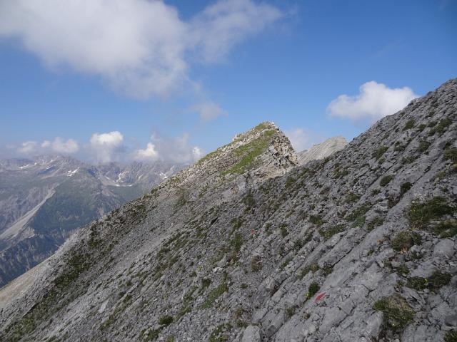 Gefahreneinschätzung: Nordgrat wg. brösligen Untergrund und Nässe sehr unangenehm zu gehen, allerdings gut gesichert und markiert. Beim Gartner Joch auf die Holzpfähle achten.