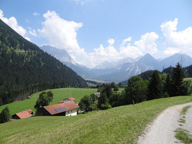 Tourenverhältnisse: Obergartener Straße bis zum Ende folgen, geradeaus weiter auf Feldweg. Nach ca. 100m über eine Holzbrücke zum Parkplatz. Ausschilderungen folgen Gartner Alm - Wolfrathshauser Hütte - Grubigstein. Trotz Seilbahnbetriebes ist dort wenig los, zumal der Weiterweg auf die Gartnerwand sehr ausgesetzt ist und typische "Turnschuhträger" fernhält. Man folgt den langen Grat über den Hauptgipfel zum dahinterliegenden Nebengipfel mit kleineren Gipfelkreuz und steigt via Nordgrat zum Sommerbergjöchle ab. Der Steig ist markiert, allerdings sehr unangenehm zu gehen aufgrund brösligen Kies und Nässe im Absturzgelände. Gut gesichert mit Stahlseilen, erfordert Klettern in 1+. Ab Sommerbergjöchle nun entweder direkt zur Gartner Alm zurück oder noch ca. 300Hm und 1,5 Stunden zusätzlich draufpacken und hoch zur Pleisspitze und dann über den Wiesengrat zum Gartnerjoch weiterwandern. Der Pfad zum Gartner Joch wird zunehmend undeutlicher und das letzte Viertel quasi weglos zum Holzkreuz des Jochs. Ab dort anders als in Karten verzeichnet ca 100m zurück und einen ostseitig (gut sicherbaren) rotweißrot markierten Pfahl folgen. Weitere Pfähle markieren die recht verwachsenen Wiesenpfad zur Forststraße hinunter. Von dort zum Ausgangspunkt hinunter.