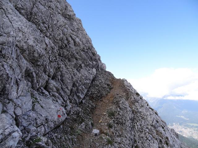 Tourenverhältnisse: Abfahrt Mittenwald Nord, an den Kasernen vorbei, erste Straße links folgen und unter die Bundesstraße gleich rechts auf den Parkplatz. Feldweg ein Stück südlicher Richtung folgen, dann links beschildert zur Hochlandhütte. Achtung, kurz nach der kleinen Brücke ist bei der Pfadverzweigung offenbar der Wegweiser abhanden gekommen. Hier den linken Weg wählen. Ansonsten Wegverlauf über Hochlandhütte und Wörnersattel folgen. Ab Wörnersattel schöne Kletterei im 1er Bereich. Der Weg ist frisch markiert, alle 3m ein roter Punkt lassen keine Orientierungsschwierigkeiten aufkommen. Die oft zitierte 2er Kletterstelle ist 2m hoch und ich hab sie im Aufstieg noch nicht einmal bewußt wahrgenommen. Für eine Rundrunde ab den Wörnersattel ->Wörnerkopf ->dem Grat entlang bis zu einer Wiese, Weg in westlicher Richtung (Rehbergalm) folgen. Der Weg stößt auf einen anderen, hier rechts durchs Gatterl auf die Wiese und dort Richtung Rehebergalm -> Mittelwald. Kurz vor dem Ende stößt der Pfad auf eine Forststraße, hier links ein Stück zum Aufstiegsweg und auf diesen in 10 Minuten zum Parkplatz.