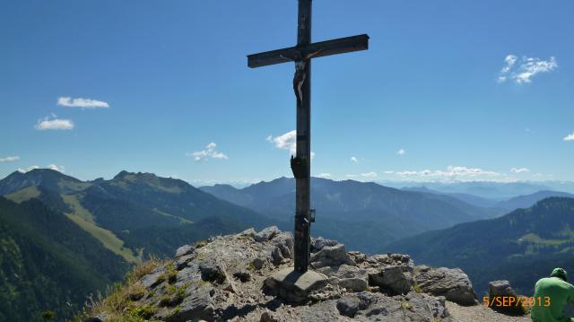 Dann zu Fuß zunächst nach Osten und dann südlich über den bewaldeten Kamm hinauf zum Gipfelkreuz.