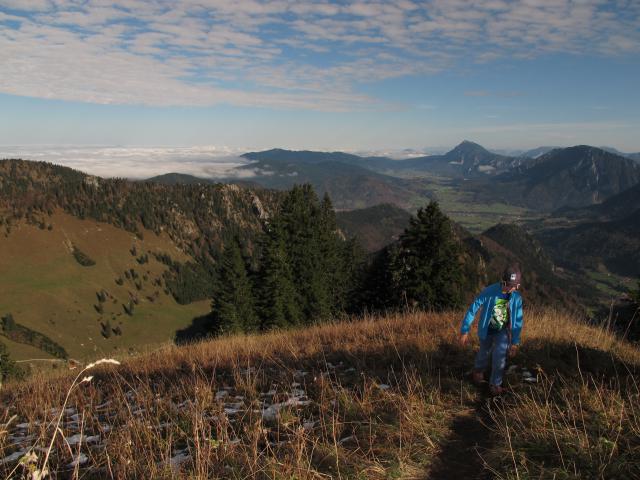 Tourenverhältnisse: In den schattigen Passagen oft ein bisschen schmierig, aber kein tiefer Batz. Überwiegend gute und trockene Verhältnisse. Nordseiten waren ab ca. 1500 m ganz leicht angezuckert. Die Berchtesgadener Alpen im Hintergrund waren dagegen richtig weiß. Wetter: ab Ruhpolding Hochnebelfrei im alpenvorland hat sich die nebeldecke dagegen den ganzen Tag nicht aufgelöst. Am Gröhrkopf also sonnig und warm.