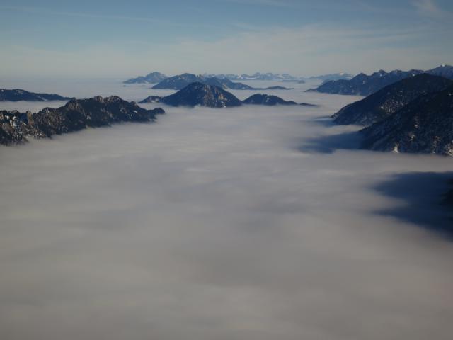 Tourenverhältnisse: Im Aufstieg Schnee am Weg ab ca. 1300 m; fest eingetretene Spur. Im Abstieg war dann - bedingt durch das Tauwetter - Schneematsch mit aperen Stellen; ab ca. 1500 m war der Weg feucht und/oder batzig. Insgesamt aber gut zu gehen. Nebelobergrenze bei ca. 1300 m; darüber Kaiserwetter.