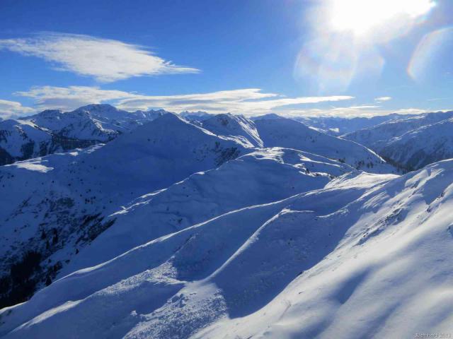 Tourenverhältnisse: Ausreichend Schnee, kaum Bodenkontakte. Der Gipfelrücken ist verblasen, in der Mitte sind Hohlräume in der Schneedecke zu beachten. Insgesamt gute Verhältnisse für Anfang Dezember.