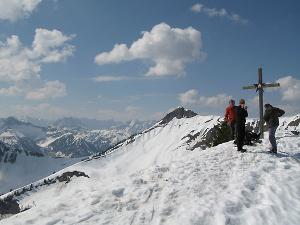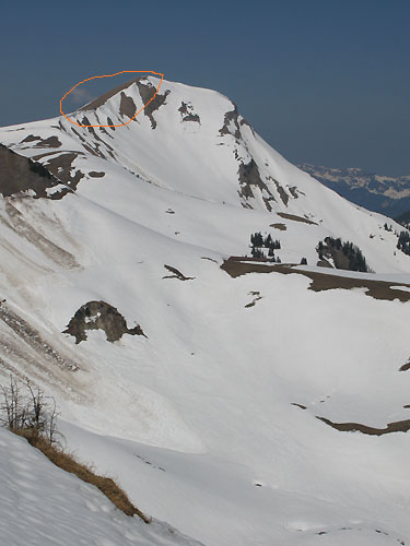 Gefahreneinschätzung: Bin im Aufstieg über den Grat zum Gipfel, habe dabei festgestellt, dass die Querung noch nicht völlig durchgeweicht war, und bin dann bei der Abfahrt durchgeschossen.