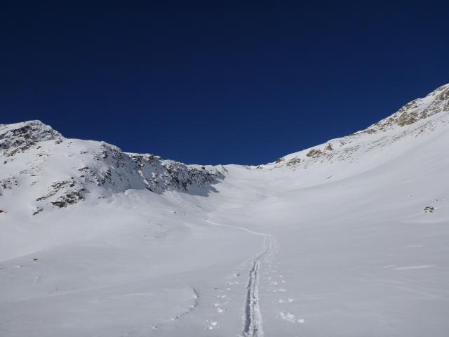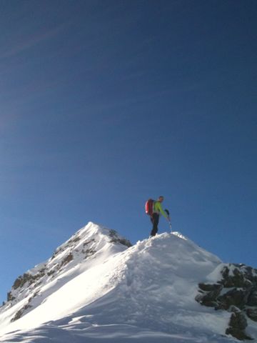 Gipfelgrat gut machbar, schöner Stapfschnee.