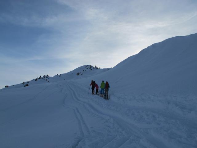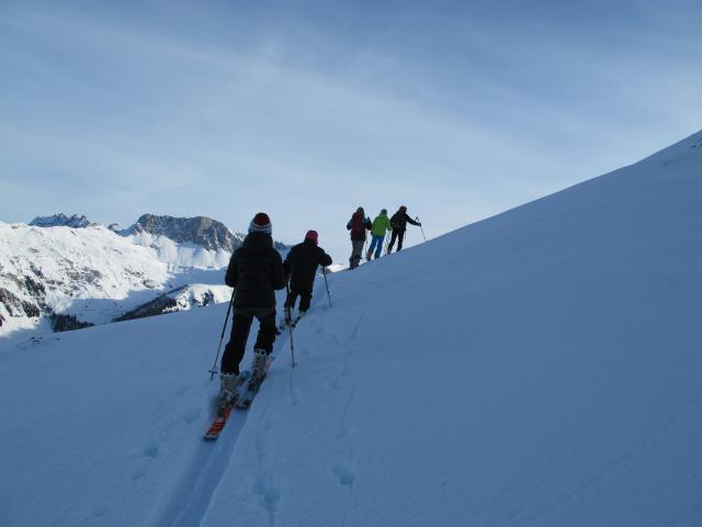 Tourenverhältnisse: Anders als am Eggberg und am Hasenflüeli war der Schneedeckenaufbau hier sehr vom Schwimmschnee geprägt. Daher ist man bei der Abfahrt ständig durchgebrochen - Absaufen der Ski.