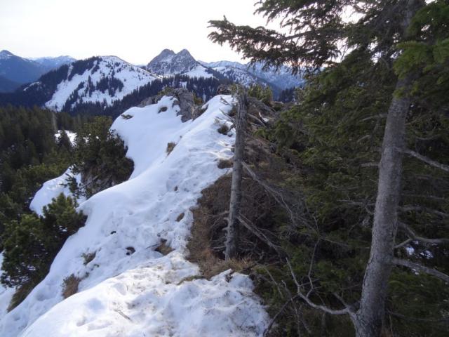 Tourenverhältnisse: Matsch dominiert die Tour im unteren Bereich, so daß es keine Freude mehr ist. Oben dann teils Schnee, entweder durch die vielen Wanderer davor so verdichtet, daß es eine reine Eisschicht ist oder daneben sinkt man bis zum Knie ein. Übergang Schönberg/Seekarkreuz dann ganz lustig, teil 30cm Schnee, teils keiner. Ich rate von der Tour im Moment ab, da man speziell im unteren Bereich wirklich eine Affinität zu Matsch und Dreck haben muß. Lieber warten, bis es etwas abgetrocknet ist oder alternativ Neuschnee gefallen ist.