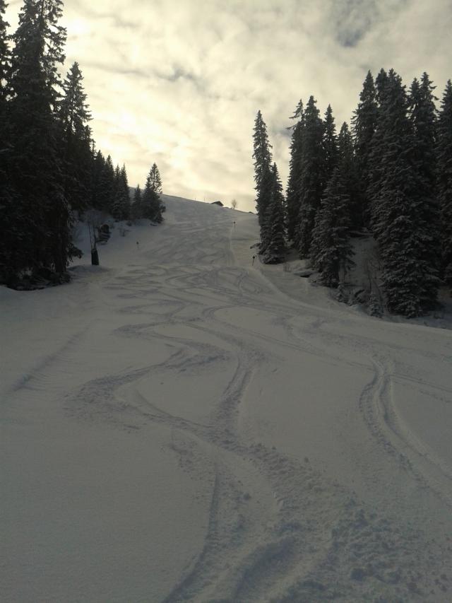 Allerbeste Verhältnisse durch die Pulverauflage auf festem Altschnee. Etwas kälter als gestern.