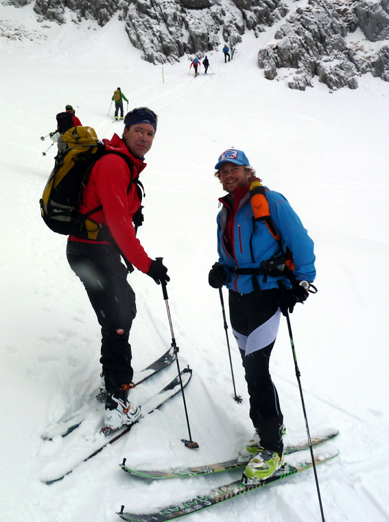 Gefahreneinschätzung: Bei LWS III Entlastungsabstände und Einzelabfahrt in frisch eingeblasenen Steilhängen; Vorsicht in kurzen steinigen Abschnitten (Sturzgefahr). Insgesamt besser als erwartet.