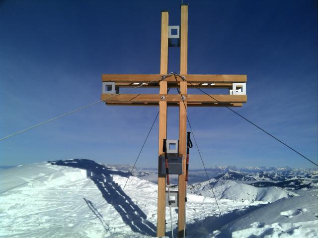 Tourenverhältnisse: Bis 200 Hm unter der Stadelkehralm ist die Rodelbahn und der Almweg die einzige Möglichkeit, das schöne Tourengelände mit dem ersehnten Pulverschnee zu erreichen. Ab Stadelkehralm herrliche Hänge mit 5 - 15 cm Pulverschnee auf fester Unterlage. Der steile Gipfelhang ist sehr harschig und wird am besten zu Fuß überwunden. Neues Gipfelkreuz.