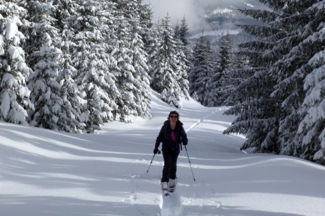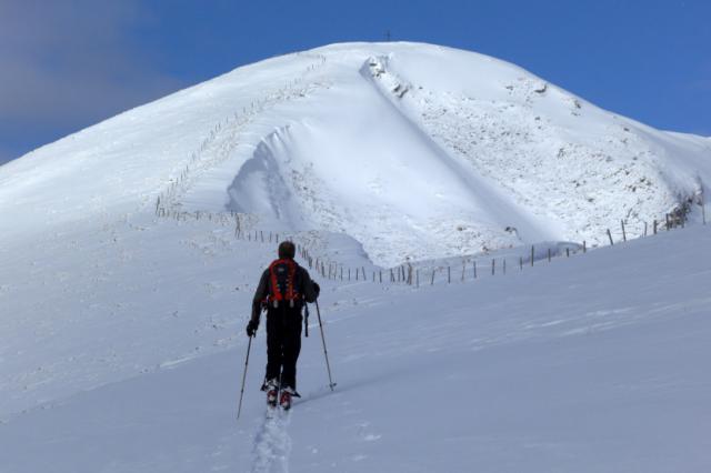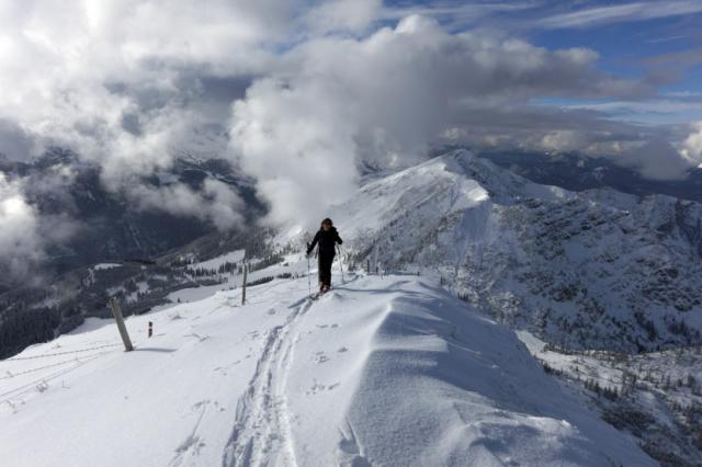 Tourenverhältnisse: Perfekt heute! So gut wie keine Leute (einer vor uns, der aber nicht am Gipfel war). Mit Ski vom Auto bis zum Gipfelkreuz. Gipfelhang etwas abgeblasen, geht aber noch mit Ski rauf und runter.
