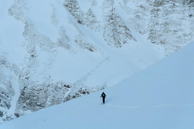 Pulver. Unten dann durch Latschen, Büsche und Bachbett etwas mühsam.