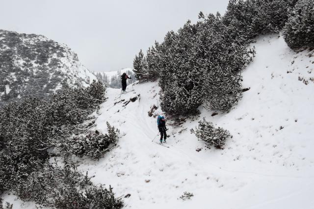 Sonstiges: Wieder die klassische Reib’n in den Miemingern. Von Biberwier bei frischen Temperaturen mit Liftunterstützung (13,60 €) auf’s Marienbergjoch. Wie unter http://www.tourentipp.de/de/to…-Skitour-Ehrwald_722.html beschrieben: Vom Marienbergjoch (1789m) in angenehmer Steigung in Richtung WSW zum Hölltörl (2125m). Von dort das Kar zügig hinunter in die Höll (1820m). Links haltend aus der Höll in Richtung NW über die Höllreise hinauf zur Grünsteinscharte (2272m). Von dort steil ins weite Drachenkar, nicht zu weit, da man zum Tajatörl (2259m) sonst wieder aufsteigen muss. Von diesem links haltend durchs Brendlkar über freie Hänge, zuletzt durch einen Latschengürtel zu Ganghofers Rast. Von dort nach rechts über die Loipe zurück ins Skigebiet von Ehrwald. Macht vier Mal Anfellen…