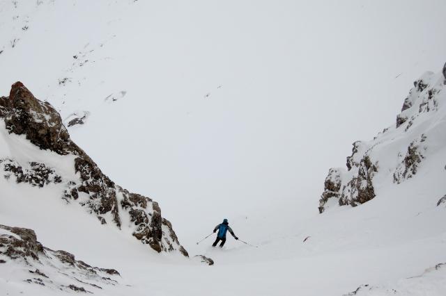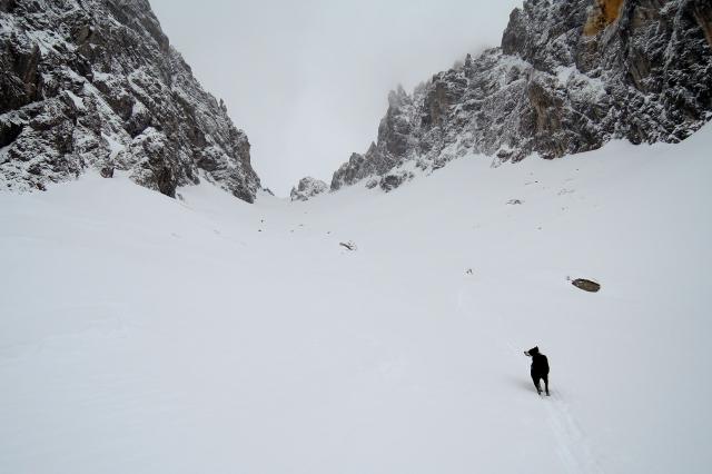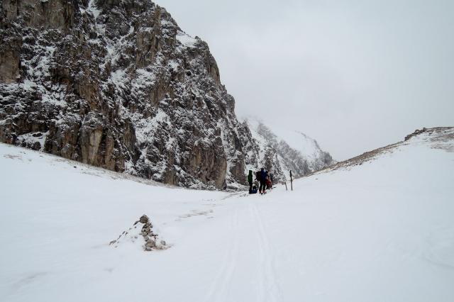 Tourenverhältnisse: Zum Marienbergjoch geringe, jedoch ausreichende Schneeauflage. Joch abgelassen. Das Kar dann gut zu fahren. Grünsteinscharte auch abgeblasen, jedoch nicht so arg wie Marienbergjoch. Im Drachenkar etwas wenig Schnee, erster (vermeidbarer) Kratzer im Belag diesen Winter nach 25 Touren. Tajatörl abgeblasen, Brendlkar dann bei umsichtiger Fahrweise exzellent.
