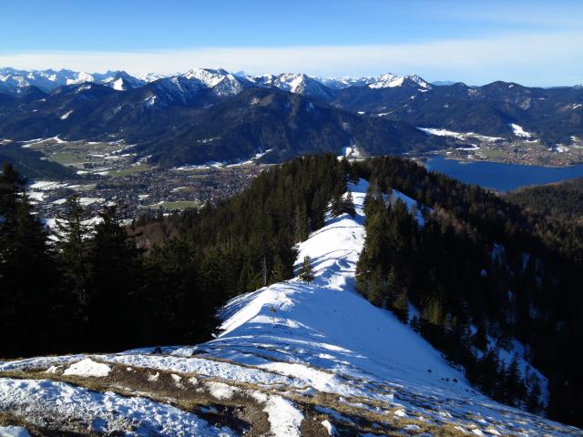 Tourenverhältnisse: Aufstieg über Tegernseer Höhenweg und am beschilderten Abzweig über den Waldwirtschaftsweg zum Gasthof Riederstein/Galaun; dann weiter über die Riederstein-Kapelle zum Gipfel. Bis zur Kapelle war der Weg so gut wie schneefrei. Danach anfangs eine dünne Schneedecke, die teils etwas glatt war. Im weiteren Verlauf etwas mehr Schnee; dafür aber eine gute Spur. Abstieg über den unmarkierten Weg, der gleich unterhalb des Gipfelhangs im Abstiegssinn links (südlich) abzweigt. Anfangs etwas Schnee; gut zu gehen. Im Mittelteil viele batzige Abschnitte und weiter unten dann trocken (der Weg biegt kurz vorm Parkplatz bei dem Schild "Sackgasse" in den Fahrweg zum Riederstein-Gasthof ein).