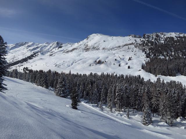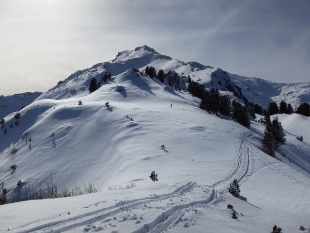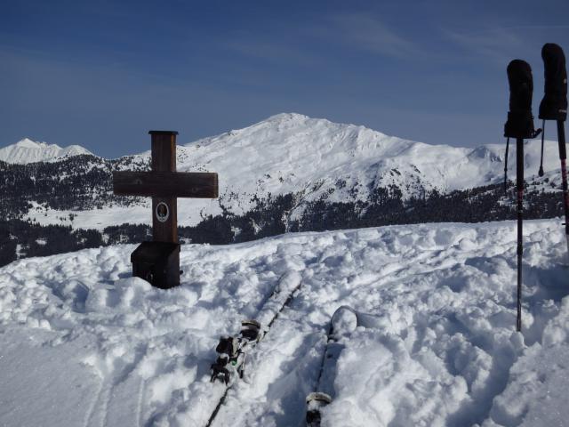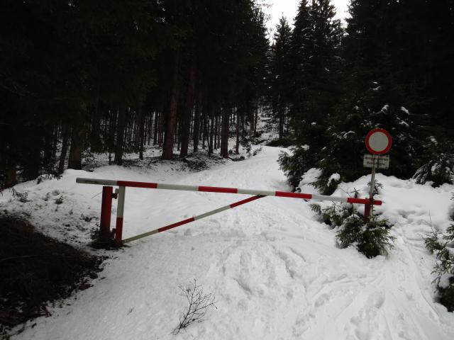 Tourenverhältnisse: Die Asphaltstraße vom "Letzten Parkplatz" bis zur scharfen Kurve mit Halteverbot ist aper (Ski tragen). Die Forststraße bis zum Abzweig an der Schranke ist geräumt, aber bis auf ein paar kurze Unterbrechungen gerade noch fahrbar. Am Weiterweg nach der Schranke (Bild 1) liegt auf der Forststraße ausreichend Schnee. Die Abkürzer im Wald bis zur Studlalm sind im Aufstieg benutzbar. Ab der Alm dann problemloser Aufstieg zum Gipfelkreuz. Mittags am Gipfel dann trotz des angekündigten Föhns windstill bei angenehmer "Brotzeittemperatur". Abfahrt: bis zur Studlalm gut zu fahrender Pulverschnee, der schon ganz leicht angefeuchtet war, aber auf fester Unterlage. Viele unverspurte Hänge. Ab der unteren Alm bin ich dann auf der Forststraße abgefahren; der Schnee wurde nach unten hin immer pappiger, aber bis zur Schranke ging's ganz gut (die Abkürzer im Wald waren wegen zu geringer Schneeauflage nicht wirklich abfahrtstauglich).