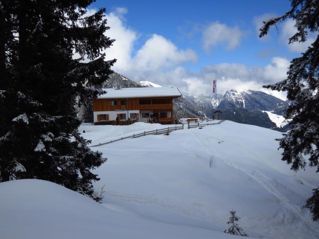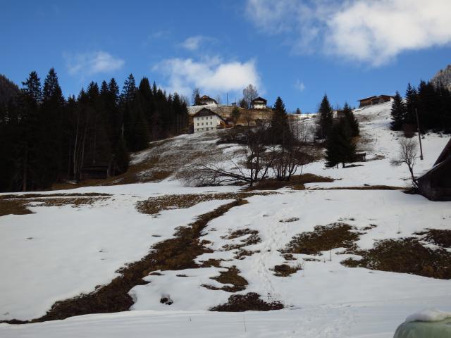 Tourenverhältnisse: Vom Parkplatz weg liegt Schnee. Aufstieg im Wald war möglich, aber abschnittsweise nur sehr dünne Schneedecke. Ab Ehenbichler Alm dann genügend Schnee. Abfahrt: bis zur Ehenbichler Alm schon etwas feuchter Pulverschnee, aber noch gut zu fahren. Im weiteren Verlauf bin ich meist auf die Forststraße ausgewichen (dort lag genügend Schnee), da die Waldabfahrt kein wirklicher Genuss war. Der letzte Wiesenhang vor dem Ziehweg zum Rotlech und der Ziehweg selbst hatten genügend Schnee.