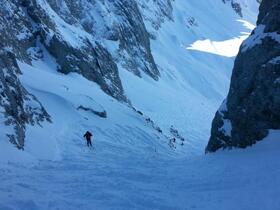 Im Griesner Kar Pulver. Alle Rinnen, ausser Kl. Törl (wenig Schnee?) wurden heute begangen (ca. 15 Leute).