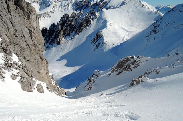 Sonstiges: Ähnlich wie unter http://www.tourentipp.de/de/to…mpeljoch-Skitour_655.html beschrieben von der Hungerburg aus mit der Seegruben-/Hafelekarbahn (http://www.nordkette.com/die-bahn/fahrplan-information.html) auf’s Hafelekar (2280m) und von dort zu Fuß auf die Hafelekarspitze (2335m). Durch die 45° steile NO-Rinne durchs Hafelekar ins Grubach. Zuerst nördlich auf das Niederbrandjoch zu, die Gleirschzähne rechts liegen lassend. Dann Richtung NW auf das Nördliche Gleirschtaler Brandjoch zu, jedoch rechts davon ins Kar zur Mandlscharte (2280m) hinauf. Von dort weiter Richtung Pfeishütte (NO). 300m davor zuerst nach SO auf die Thaler Jochspitze, bald jedoch in NNO Richtung auf das Stempljoch (2215m) zu. Von dort in NNW Richtung auf die Kleine Stempeljochspitze (2529m), die wir jedoch nicht ganz erreichen. Durch schweren Sulz zwischen vielen Steinen hindurch wieder zum Joch hinab. Von dort über einen genialen 600Hm Hang in den Issanger. Zum Issjöchl (1660m) hinauf lohnt es sich fast noch einmal anzufellen, ehe man an den Herrenhäusern vorbei die Forststrasse durchs Halltal abfährt. Auf 1150m heißt es abschnallen und bis zur Bushaltestelle Absam/Bettelwurfsiedlung (760m) tragen… Mit dem Bus (http://www.ivb.at) in ca. 1h zurück zur Hungerburg Station.