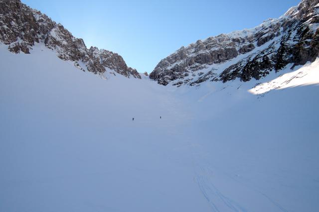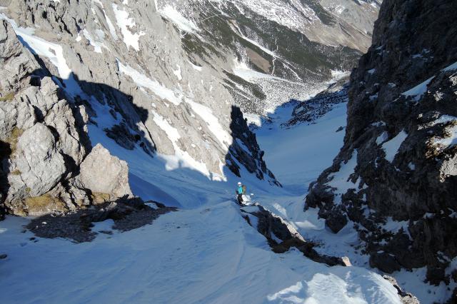 Sonstiges: Ähnlich wie unter http://www.tourentipp.de/de/to…mpeljoch-Skitour_655.html beschrieben von der Hungerburg aus mit der Seegruben-/Hafelekarbahn (http://www.nordkette.com/die-bahn/fahrplan-information.html) auf’s Hafelekar (2280m) und von dort zu Fuß auf die Hafelekarspitze (2335m). Durch die 45° steile NO-Rinne durchs Hafelekar ins Grubach. Zuerst nördlich auf das Niederbrandjoch zu, die Gleirschzähne rechts liegen lassend. Dann Richtung NW auf das Nördliche Gleirschtaler Brandjoch zu, jedoch rechts davon ins Kar zur Mandlscharte (2280m) hinauf. Von dort weiter Richtung Pfeishütte (NO). 300m davor zuerst nach SO auf die Thaler Jochspitze, bald jedoch in NNO Richtung auf das Stempljoch (2215m) zu. Von dort in NNW Richtung auf die Kleine Stempeljochspitze (2529m), die wir jedoch nicht ganz erreichen. Durch schweren Sulz zwischen vielen Steinen hindurch wieder zum Joch hinab. Von dort über einen genialen 600Hm Hang in den Issanger. Zum Issjöchl (1660m) hinauf lohnt es sich fast noch einmal anzufellen, ehe man an den Herrenhäusern vorbei die Forststrasse durchs Halltal abfährt. Auf 1150m heißt es abschnallen und bis zur Bushaltestelle Absam/Bettelwurfsiedlung (760m) tragen… Mit dem Bus (http://www.ivb.at) in ca. 1h zurück zur Hungerburg Station.