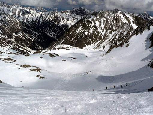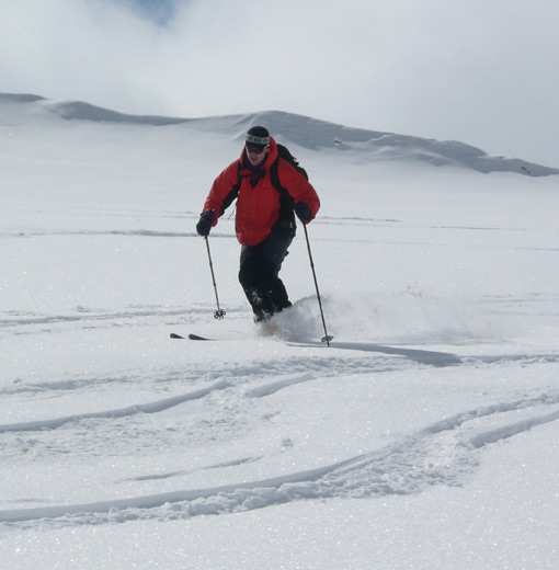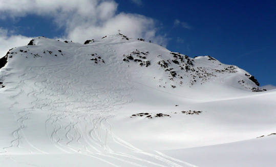 Tourenverhältnisse: 15 cm Neuschnee (Pulver) zwischen Gipfelm und oberer Zwing, darunter in der Abfahrt Firn