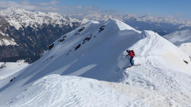 Die Hänge dieser Gebirgskette sehen alle sehr einladend aus und bekommen derzeit auch ab 9 Uhr Sonne ab. Heute am Gipfel geschlottert (sehr windig).