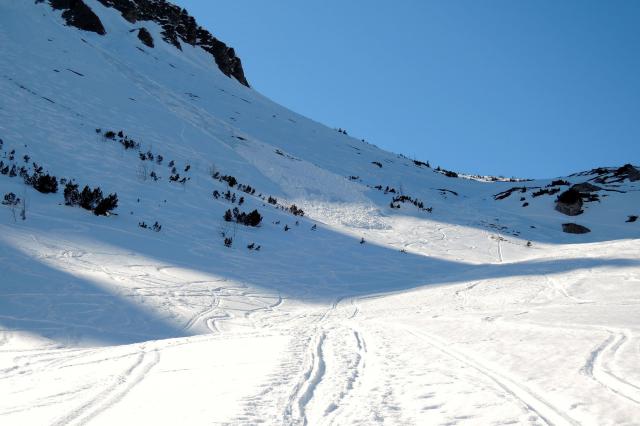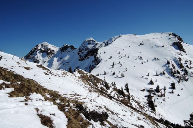 Tourenverhältnisse: Bis zur Bergwachthütte kein Schnee auf dem Weg. Der Rotwandsüdhang hat nur noch Schneereste. Die Nebelrinne ist im unteren Drittel aufgefirnt, sonst eher hart. Reguläre Piste noch gut, Zielhang teils aper.