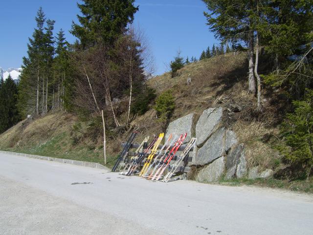 Tourenverhältnisse: Vom P weg 5 Min. tragen auf der Skipiste, im weiteren Verlauf im Wald 2-3 kurze apere Stellen; im freien Gelände noch ausreichend Schnee vorhanden (meist hart gefroren); Abfahrt zur Lafasteralm noch einiges an Pulver gefunden, trotzdem ziemlich wechselnde Verhältnisse; für Firn waren wir hier fast zu früh dran; die Forststrasse von den Almen zurück zum P haben mehrere apere Stellen (mehrmals tragen ist angesagt) und stellenweise nur eine sehr dünne Auflage, die letzten gut 10 Min. gings heut nur noch zu Fuß.