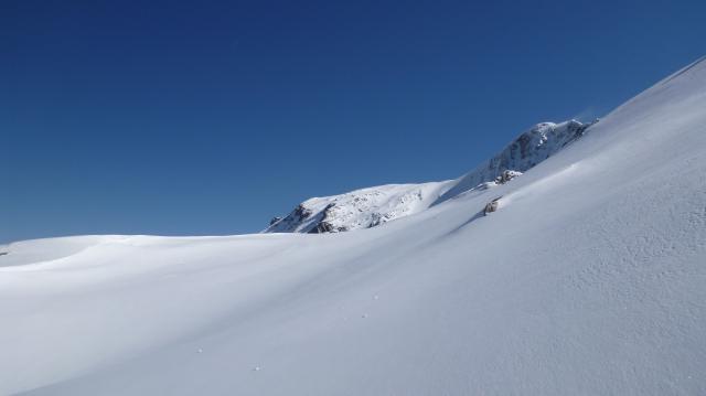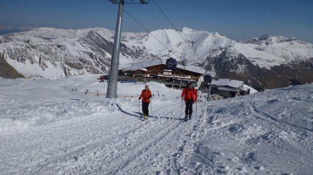 Tourenverhältnisse: Auffahrt mit der Bahn bis zum Tuxer Fernerhaus, dort längere Zeit den besten Einstieg in die Tour gesucht, nach Abfahren zum Spannaglhaus wieder über Piste hoch zur Talstation des Gletscherbus III und weiter auf Piste aufwärts, dann nach links ins Gelände gequert und endlich die Aufstiegsspur erreicht. Dieser folgend nach oben, allerdings sind unsere Vorgänger nur bis zu einer Scharte, so dass wir zum Riffler selber weiterspuren mussten. Spur leider dann etwas zu hoch angelegt, so dass wir statt der Rampe zum Gipfelhang nur einen Felsabbruch erreichten. Dort dann bei starkem Wind abgefellt und abgefahren. Schnee ein Traum, z. T. unverspurtes Pulver, deshalb auf halber Strecke nochmal aufgefellt und das schönste Stück ein zweites mal abgefahren. An der Bergstation der ersten Sektion erreichten wir wieder das Pistengebiet, dort dann hoch und über Piste Nr. 1 bis ins Tal abgefahren.