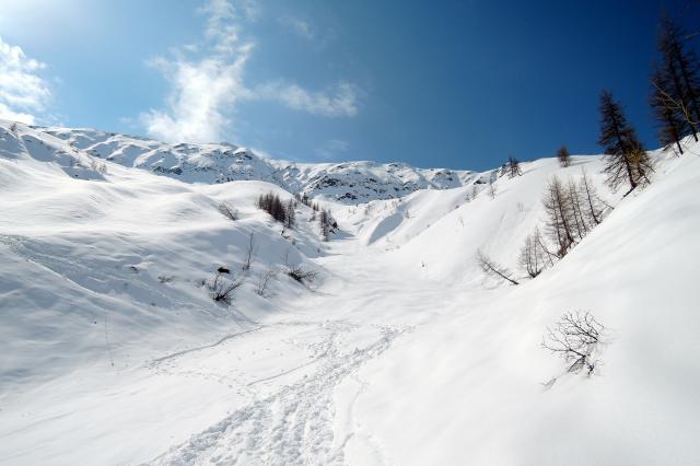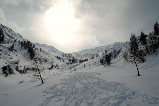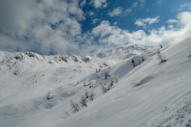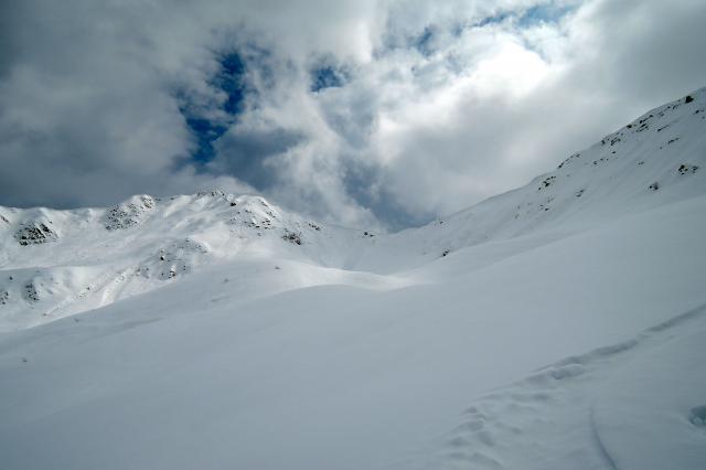 Sonstiges: Von Kalkstein (1639m) wie unter http://www.tourentipp.de/de/to…ur-Villgratental_717.html beschrieben an den Alfenalmen (1700m) vorbei Richtung SO durchs Marchental auf den Einschnitt rechts vom Gannekofel zu. Unter der zu ausladenden Wächte beschließt man umzukehren.