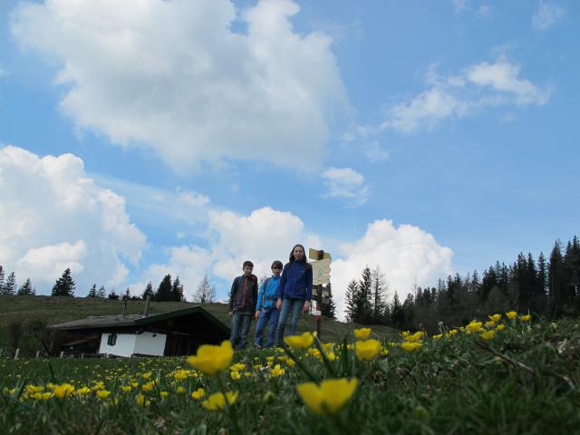 Tourenverhältnisse: Wunderbare Verhältnisse zum Wandern, alles trocken, Schnee liegt in dieser Höhe eh nicht mehr. Viele Blumenwiesen und auch die Bäume sind bis auf ca. 1000 m schon grün. Taubenseehütte geöffnet, Frankenalm auch. Wetter: heiter bis wolkig, Fernsicht eingeschränkt.