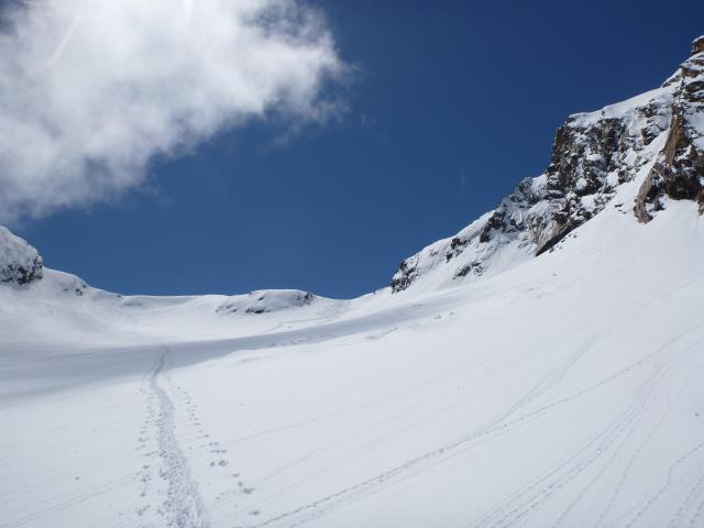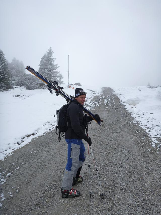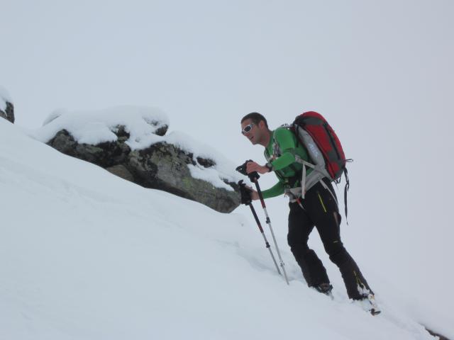 Tourenverhältnisse: Aufstieg über Wilde Grube, die untersten 100 hm tragen, danach durchgehende Schneedecke, ab. ca. 2300 m ca. 40 cm Pulver, der allerdings aufgrund der Temperatur schon relativ schwer war. Abbruch der Tour auf 2900m da es innerhalb 5 Minuten total zugezogen hat.