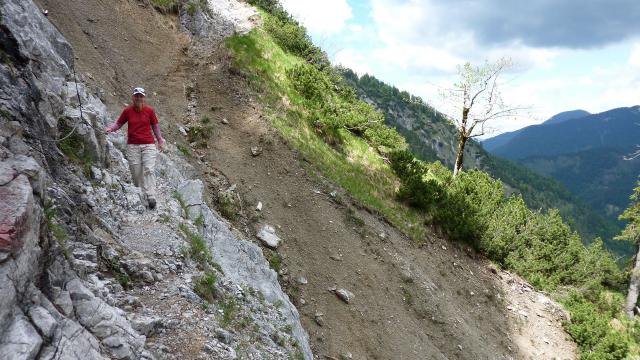 Tourenverhältnisse: Tour gegangen, wie in tourentipp.de beschrieben, Überschreitung des Blaubergkamm mit Einkehr auf der Blaubergalm (20 Plätze für Übernachtung). Abstieg durch die Wolfsschlucht. Beste Verhältnisse auf gesamter Tour, kein Schnee mehr.