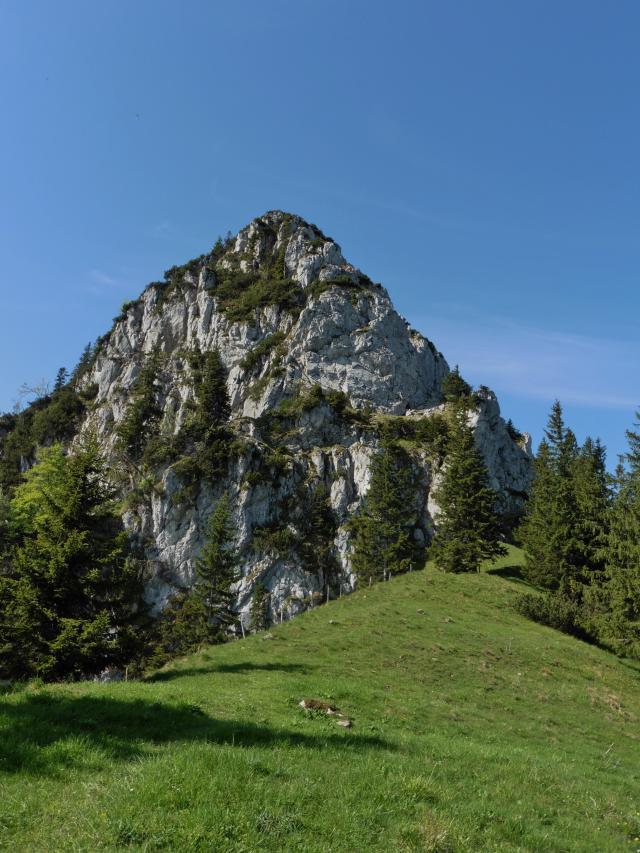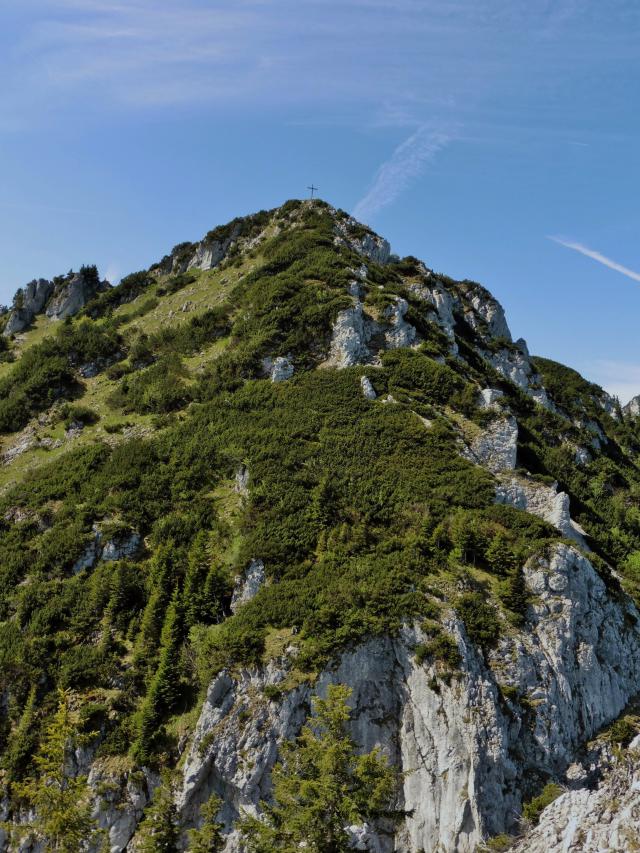 Sonstiges: in Bad Feilnbach gleich nach der Ortseinfahrt kostenloser Parkplatz; von dort mit dem MTB ins hintere Jenbachtal bis Brücke ca. 900m; von dort per pedes auf der Forststraße an der Schloßalm vorbei bis zu deren Ende; dann auf Steig auf die Rampoldplatte 1422m; vom Gipfel immer am Grat entlang bis unmittelbar an den Felsaufbau des Lechnerkopfes; ca. 10m rechts, dann sofort über steile Schrofen hinauf; immer rechts haltend durch felsige Rinnen in eine markante Scharte am Westgrat, dann links zum Gipfel 1547m ; zurück zur Scharte und durch eine Rinne südseitig hinunter zum Aufbau der Hochsalwand; auf Steig hinauf zum Gipfel 1625m; von dort auf markiertem Weg zur Reindleralm und durch Wald hinunter ins Jenbachtal (Raddepot);