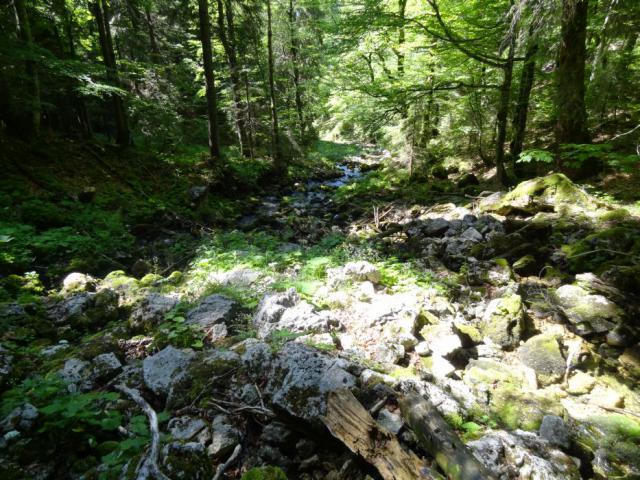Tourenverhältnisse: Trotz der Südausrichtung ideale Tour für heiße Sommertag, da man viel im lichten Wald läuft und wenig Getränke mitnehmen braucht, da entweder ständig kleine Bäche den Weg kreuzen oder man direkt am Glasbach (Abstieg) entlangläuft. Direkt an der Quelle Wasser entnehmen - da versteht man dann, warum die Angabe "Quellwasser" einiger Getränkehersteller purer Hohn ist.