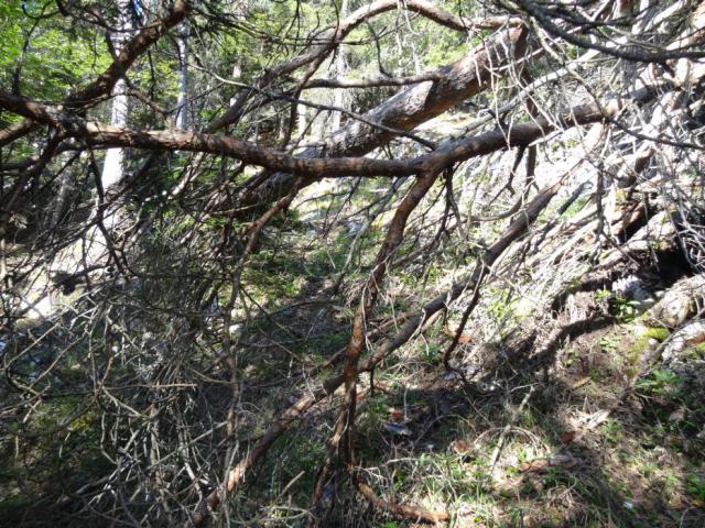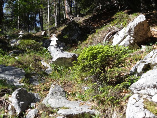 Gefahreneinschätzung: Wer hier schon mal hochgelaufen ist und nochmal gehen will, nimmt doch bitte ein Farbspray mit: Seit über 10 Jahren hält sich der Steig und es schaut auch nicht so aus, daß er zuwächst. Die übermalten Markierungen nerven eher, aber wirklich abhalten tun sie Niemanden. Ich kann zwar die Verwaltung von Leutasch verstehen, die den Steig sperren will (warum auch immer), aber wer 300 Höhenmeter hochgelaufen ist, wird sich von übermalten Markierungen auch nicht weiter nicht abschrecken lassen. Aber konsequent alle Markierungen grau übermalen halte ich doch für Schwachsinn. Wenn die Leute den Weg gehen wollen, gehen sie ihn. Allerdings wird es halt immer "gefährlicher". Das hätte man doch irgendwie anders lösen können.