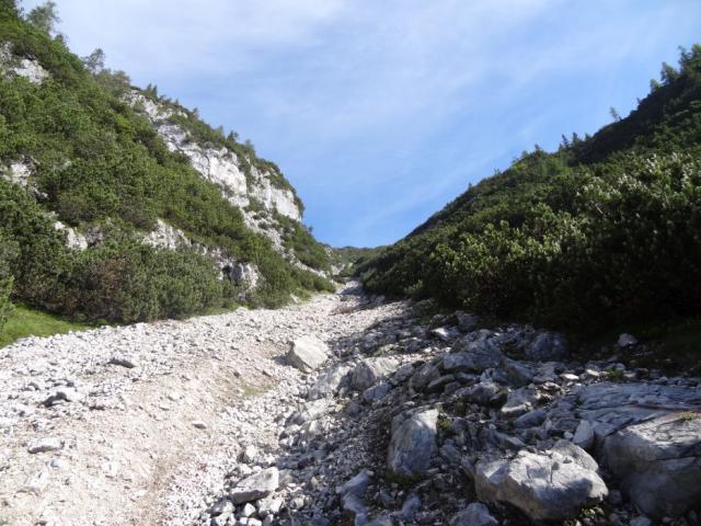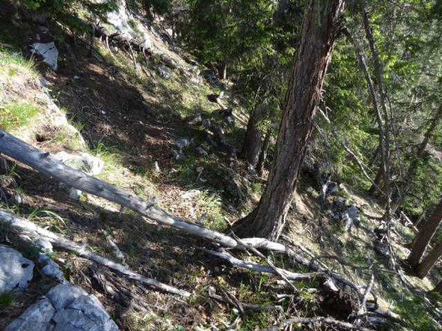 Tourenverhältnisse: Update Nazenlehn: Anfangs deutlicher Steig erkennbar, verläuft sich aber recht bald und man braucht etwas Routengespür. Nach ca. 100 HM streift man rechts eine Geröllrinne - das ist nicht die Nahenlehn. Der Pfad geht ein Stück zuvor links hoch. Tendenziell geht die Grundrichtung unten zuerst nach Norden, weiter oben dann Nordwest. Oben ist der Pfad deutlicher mit übermalten oder verblasten Markierungen versehen und auch vereinzelt Steinmänner weisen den Weg. In der Nazenlehn dann immer rechts halten. (Wer den Weg als Abstieg benutzt immer links halten und den Ausstieg links nicht verpassen. der ist nicht am Ende der Rinne, sondern ca. 400 HM über den Tal.) Oben gabelt sich die Rinne, immer in der Hauptrinne bleiben, Ausstieg mit einen gro0en Steinmandl markiert. Letztendlich kann man sich aber nicht mehr groß verlaufen, weil der logische Wegverlauf auch ohne Pfad möglich ist. Auf dem Grat dann links hoch, man kommt dann auch wieder kurz in die Rinne rein. Oben dann führt ein deutlicher Pfad zum Gipfelkreuz