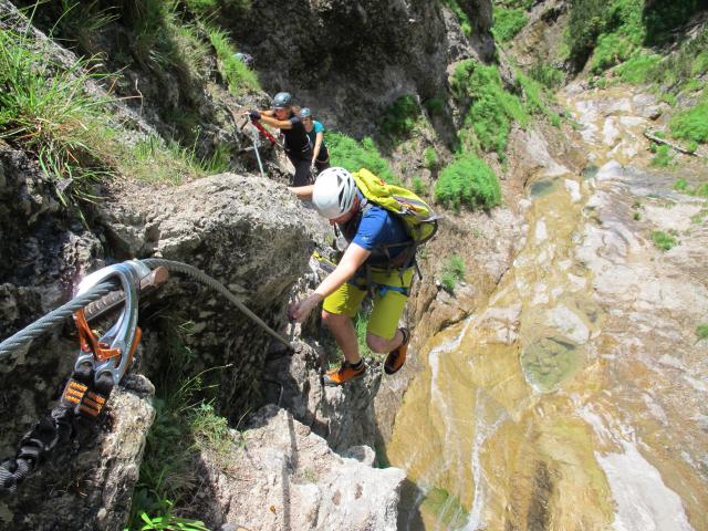Tourenverhältnisse: Da der Klettersteig durch eine Schlucht führt, trocknet er nicht so schnell ab. Trotzdem waren nach den starken Regenfällen gestern, die meisten Stellen trocken, einiges aber auch noch nass, was mich aber nicht weiter störte. Der neue Klettersteig ist auch landschaftlich sehr reizvoll, er ist kurz und von mittlerer Schwierigkeit, also B und C, erfordert jedoch an einigen STellen Armkraft. Details dazu in kürze auf tourentipp.de in einer neuen Routenbeschreibung.